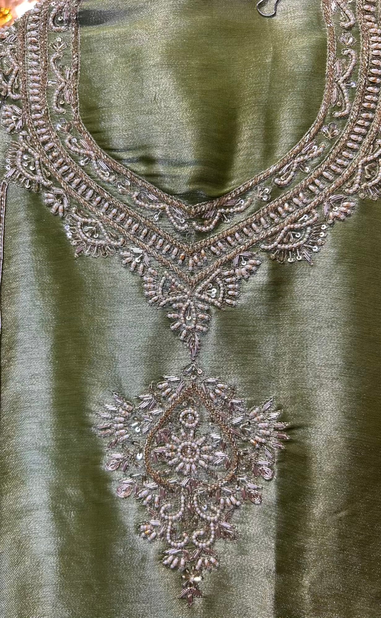 • Shimmer Organza Shirt (2.5 mtrs) – Detailed with elegant neckline handwork for a refined touch.
