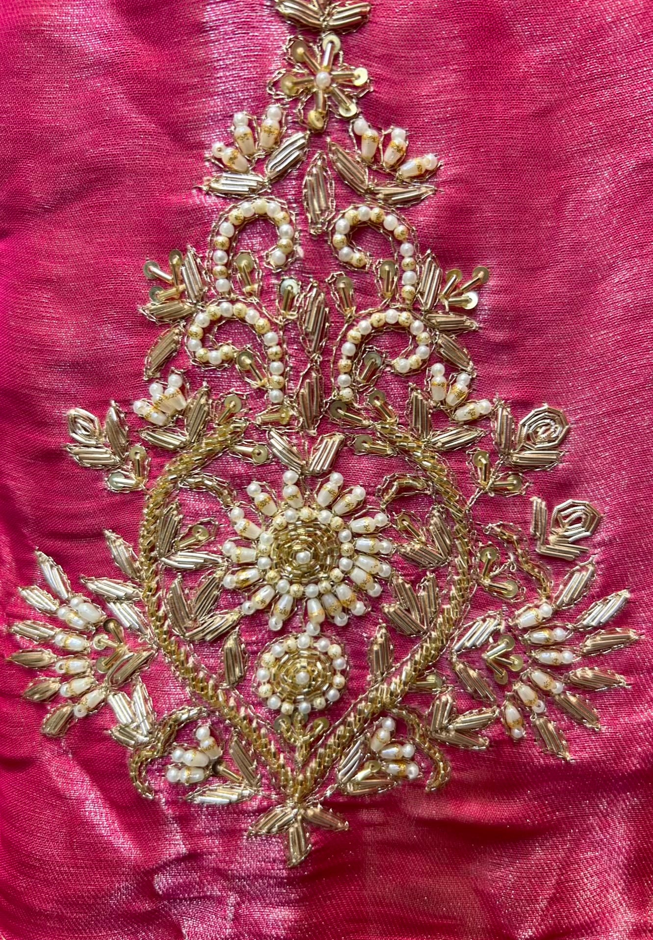 • Shimmer Organza Shirt (2.5 mtrs) – Detailed with elegant neckline handwork for a refined touch.