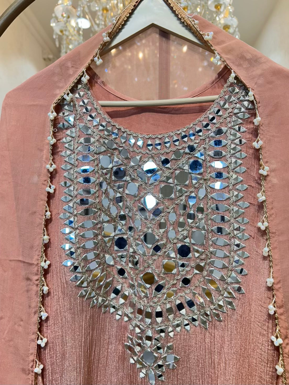 - Silk Stitched Pants (Length: 40 inches) – Detailed with real mirror and dori work, offering comfort with elegance.