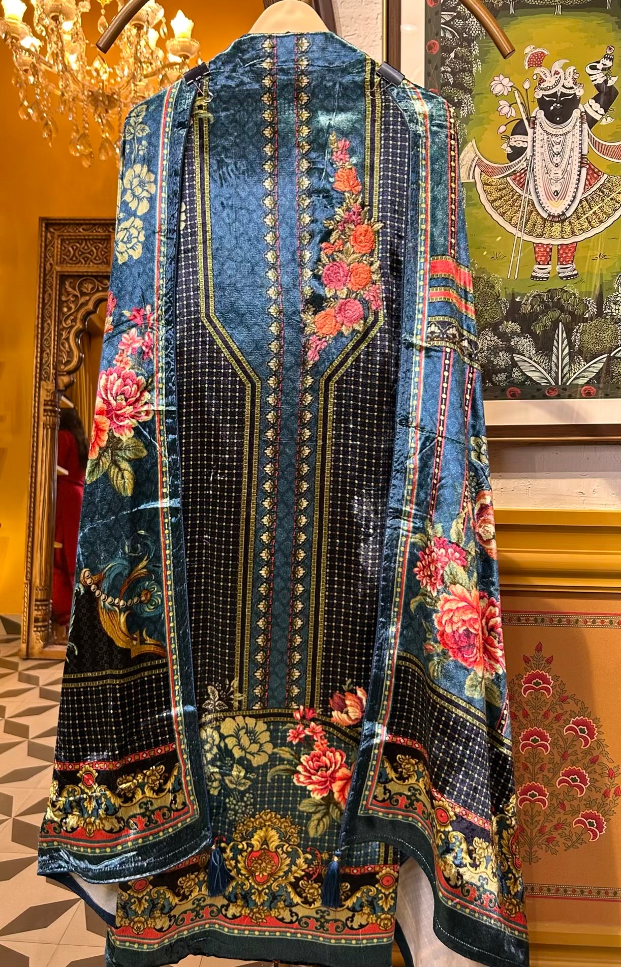• Digital Printed Velvet Dupatta (2.25 mtrs) – Rich, warm, and beautifully coordinated for a cohesive winter look.