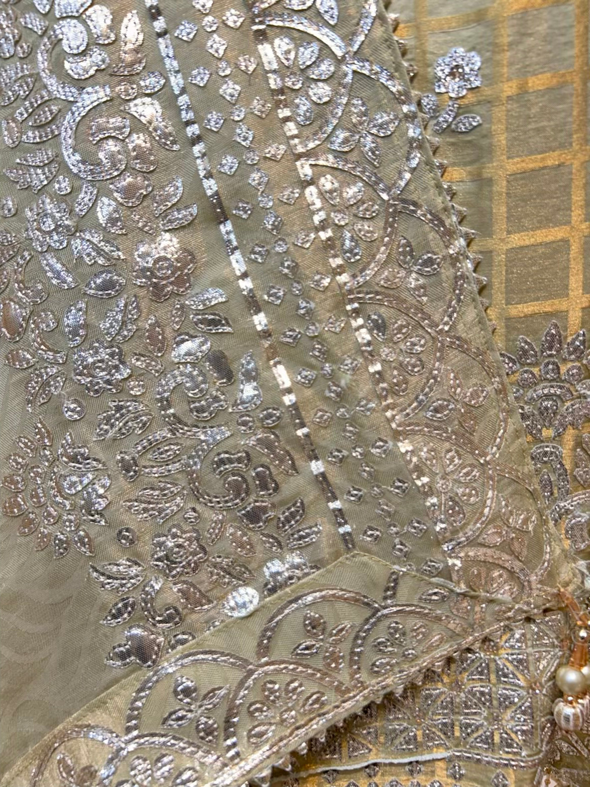 • Shimmer Organza Dupatta (2.25 mtrs) – Light and luminous, accented with leather detailing for a contemporary touch.