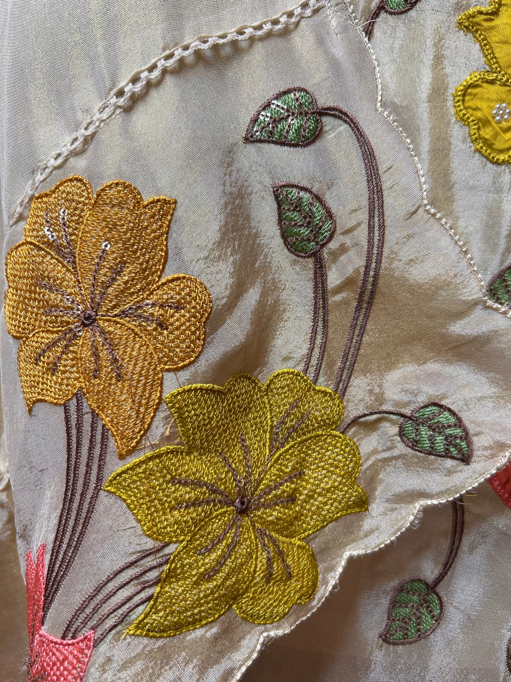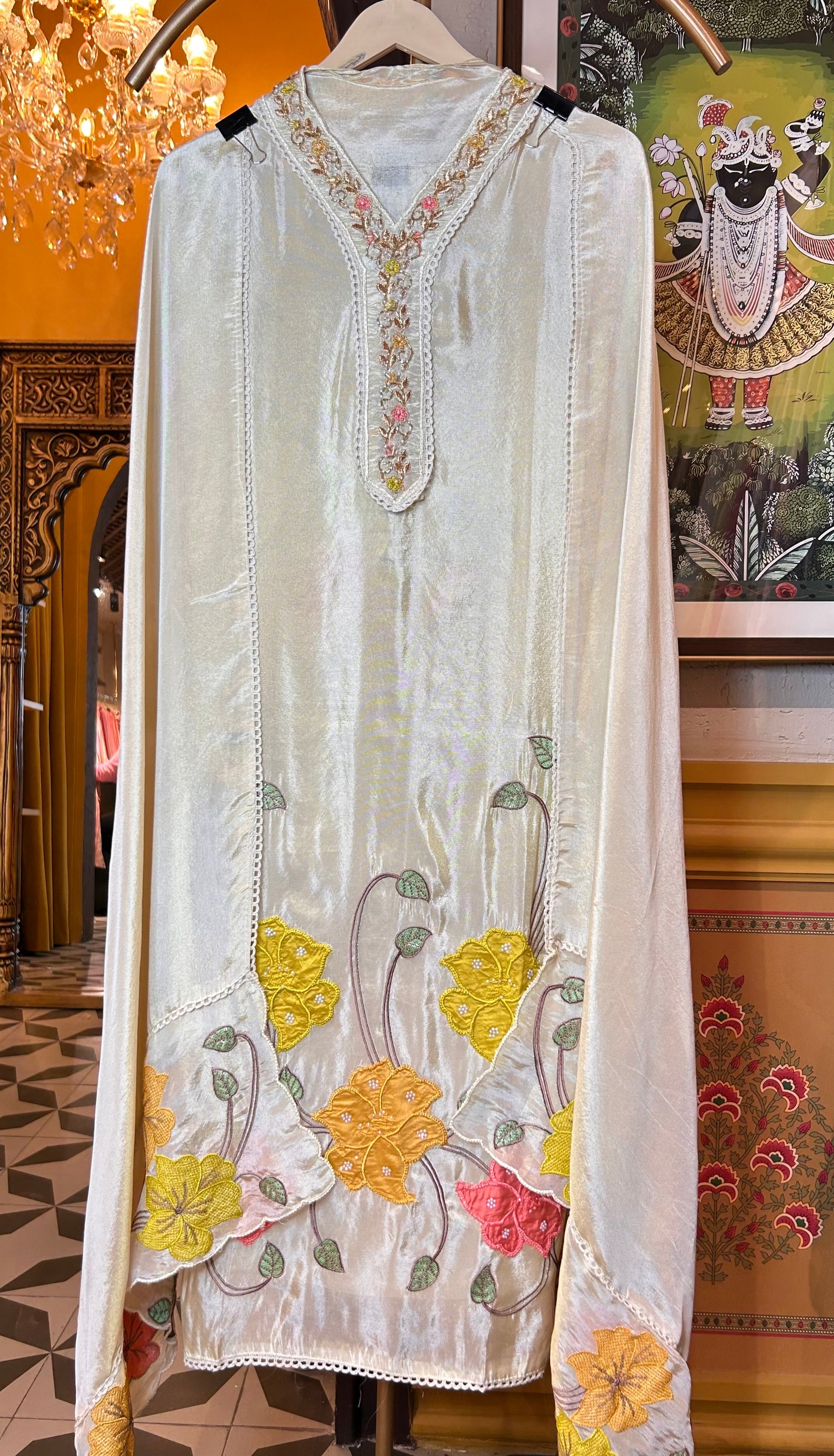 • Shimmer Organza Shirt with Hand Embroidered Neckline (2.5 mtr)