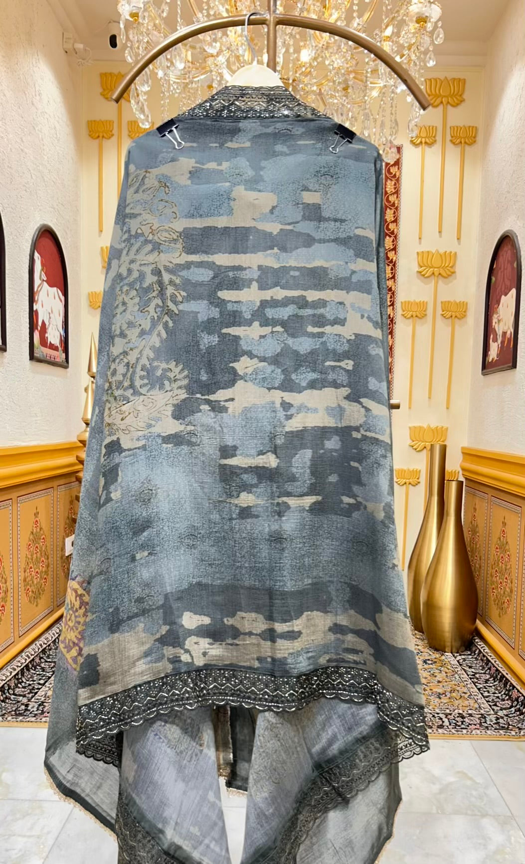 • Digital Printed Dupatta with Organza Border (2.25 mtrs) – Lightweight and fluid, framed with a four-side organza border enhanced by delicate handwork.