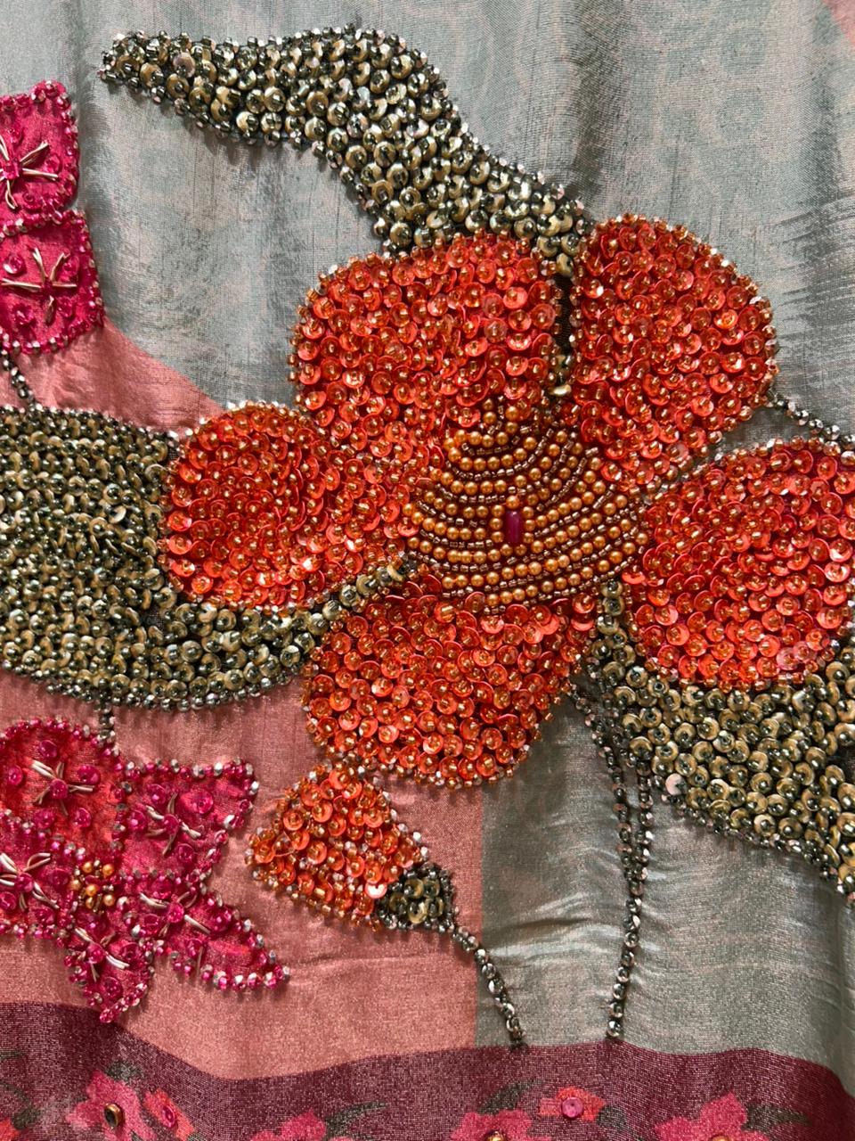 A graceful interplay of print, shimmer, and fine craftsmanship — the Zehraani Garden Élan Suit is designed for moments that call for understated elegance. Crafted in digitally printed shimmer organza, the suit is enhanced with delicate handwork that adds depth and subtle sparkle without overpowering its floral charm.