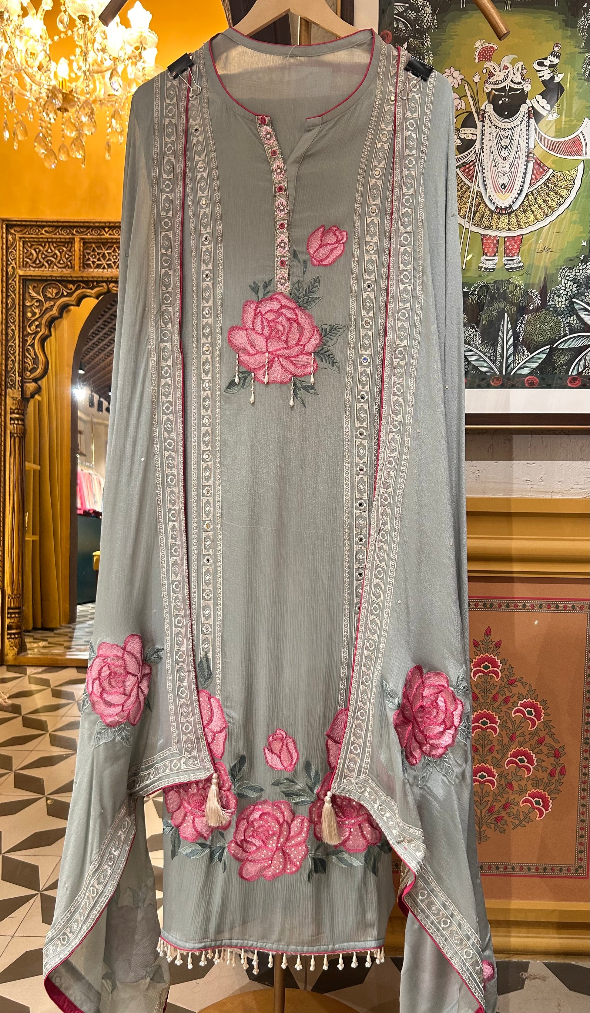 Soft and sheer with delicate detailing, the dupatta wraps you in elegance — a whisper of tradition with a modern voice.
