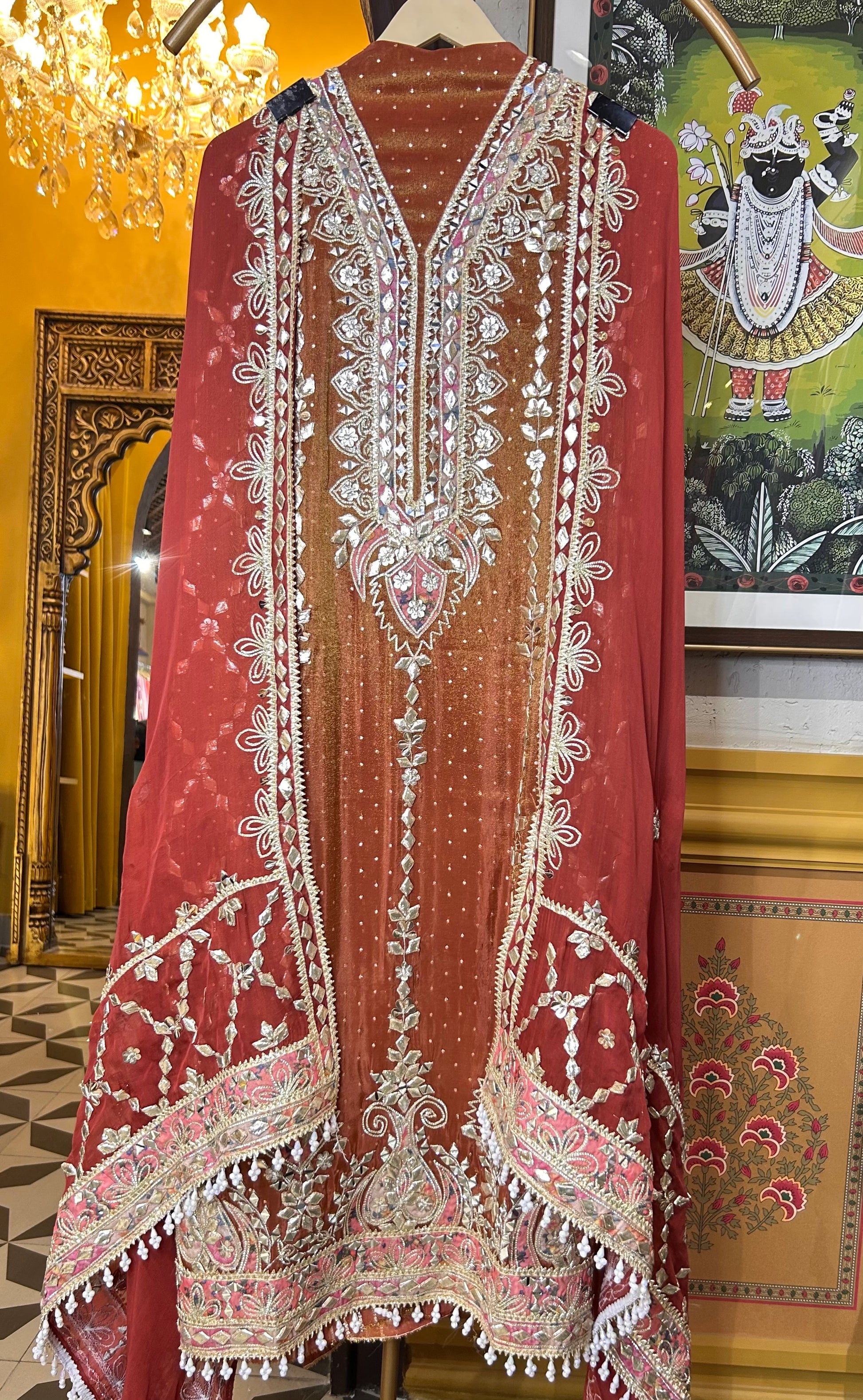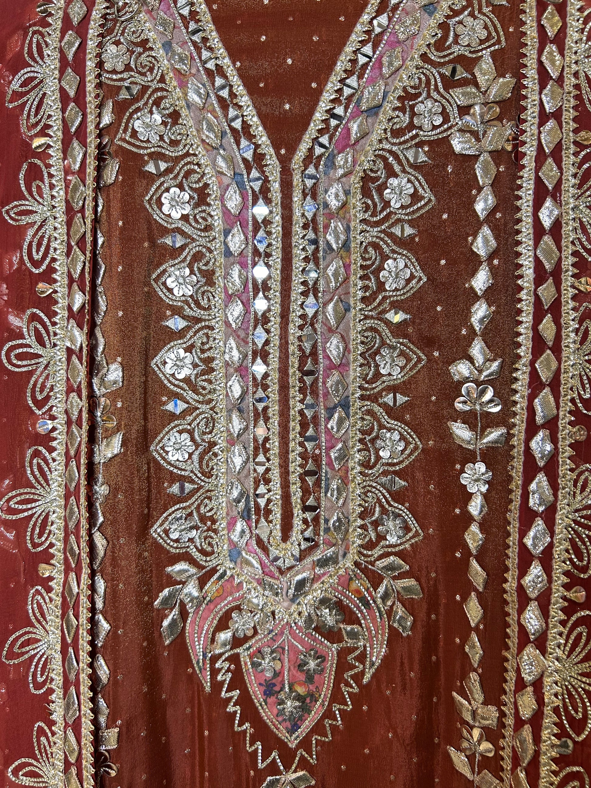 • Shimmer Organza Shirt with Gota & Real Mirror Work – 2.5 meters