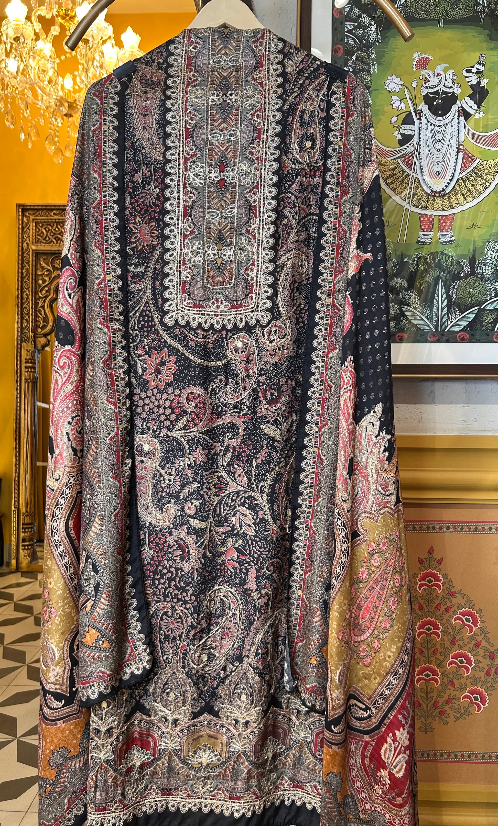 This product comes as an unstitched fabric set, allowing you to tailor it to your perfect fit.