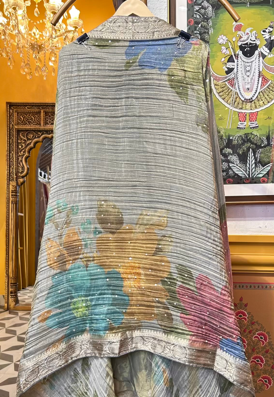 • Shimmer Organza Digital Printed Dupatta (2.25 mtrs) – Light and artistic, blending color with shimmer.